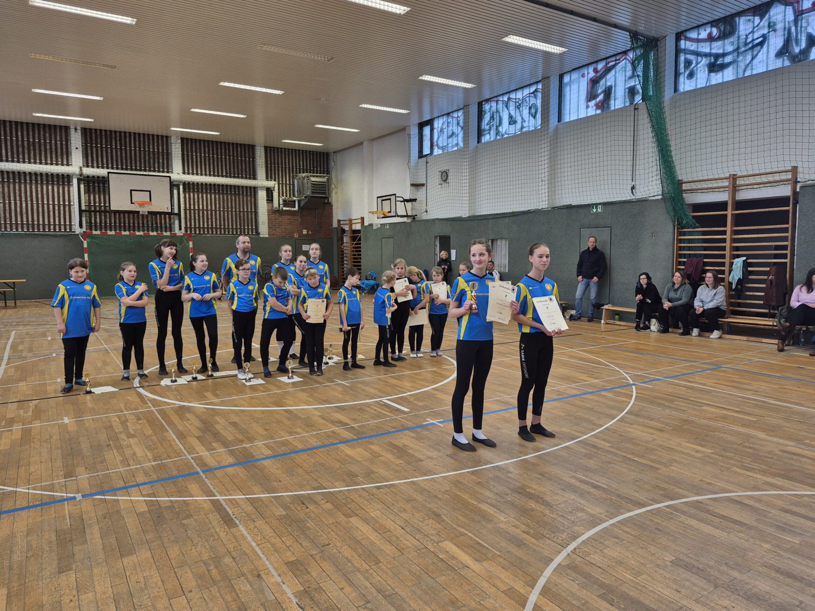 Am Ende waren stolze 13 Bestleistungen Ergebnis des intensiven Trainings der vergangenen Wochen. Besonders hervorzuheben ist die Darbietung von Julia Raesch, die mit der geringsten Abwertung von nur 0,2 Punkten sehr nahe dem maximal zu erreichenden Punktestand kam.